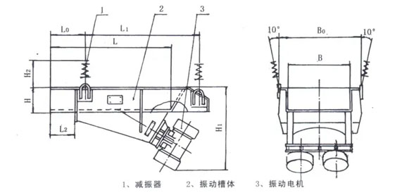 振動給料機主要由振動機架、振動電動機、彈簧、支承座及耐磨襯板等組成。